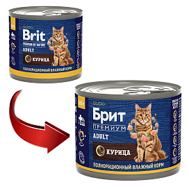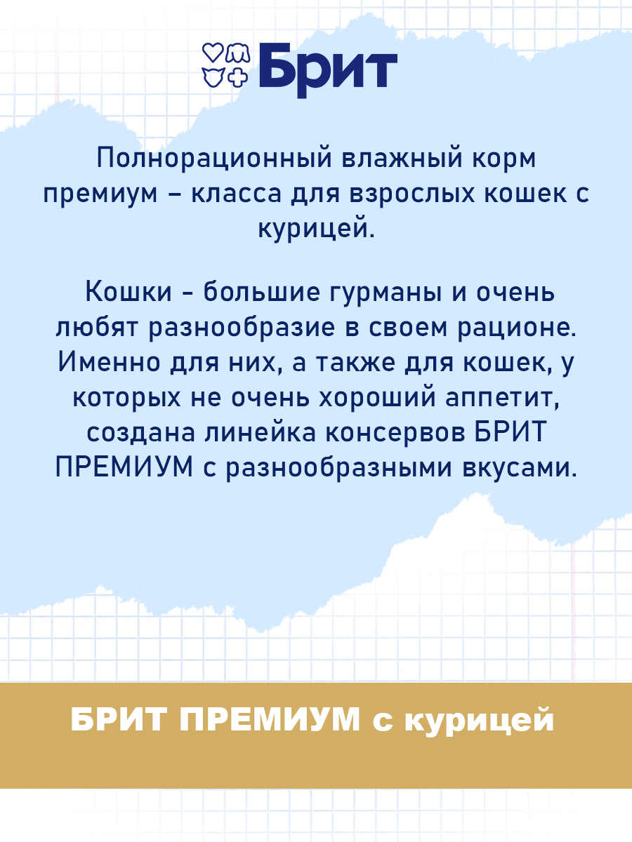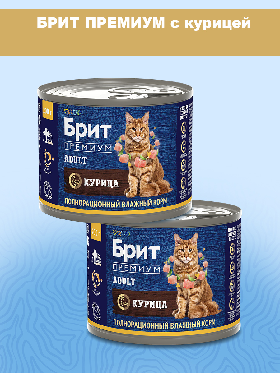 Влажный корм (консервы) для кошек БРИТ ПРЕМИУМ курица (200 гр)