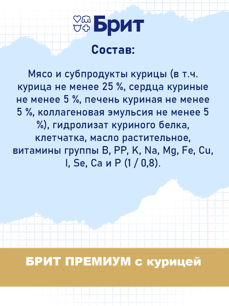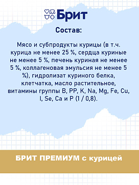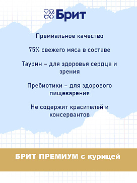 Корм БРИТ ПРЕМИУМ изготовлен из 100 % натуральных компонентов - это не только вкусно, но и полезно.