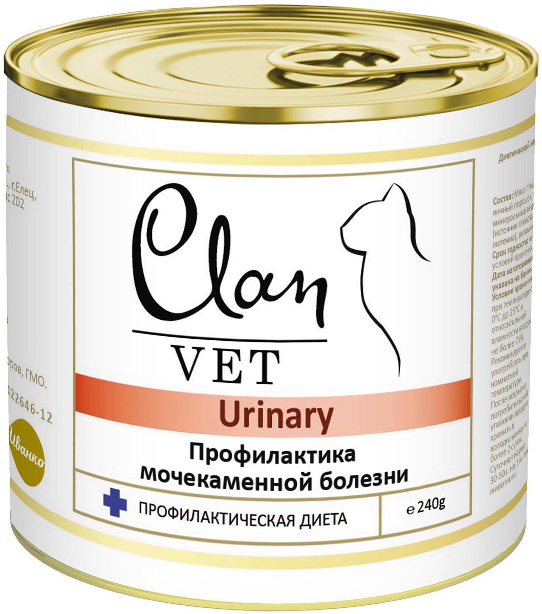 Влажный корм (консервы) для кошек CLAN VET URINARY при мочекаменной болезни (240 гр)