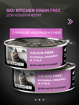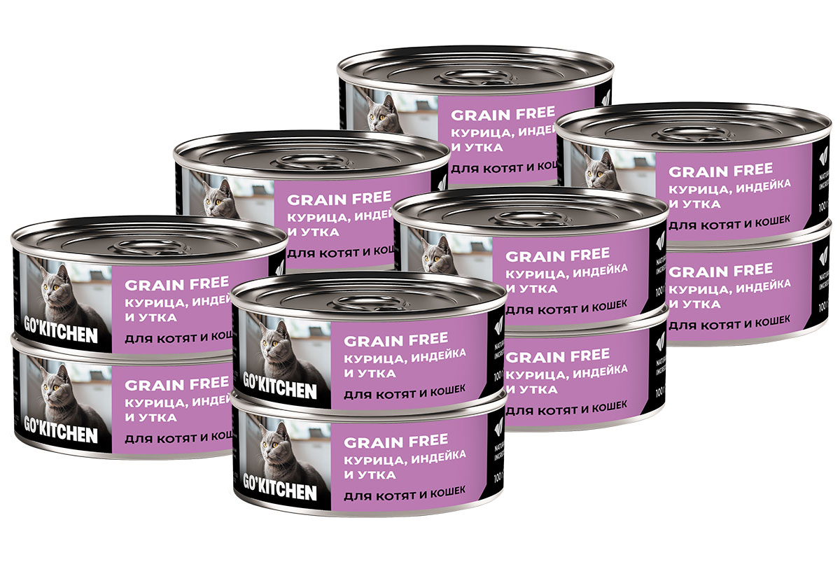 Влажный корм (консервы) для кошек и котят GO! KITCHEN GRAIN FREE беззерновой курица, индейка утка (100 гр х 12 шт)
