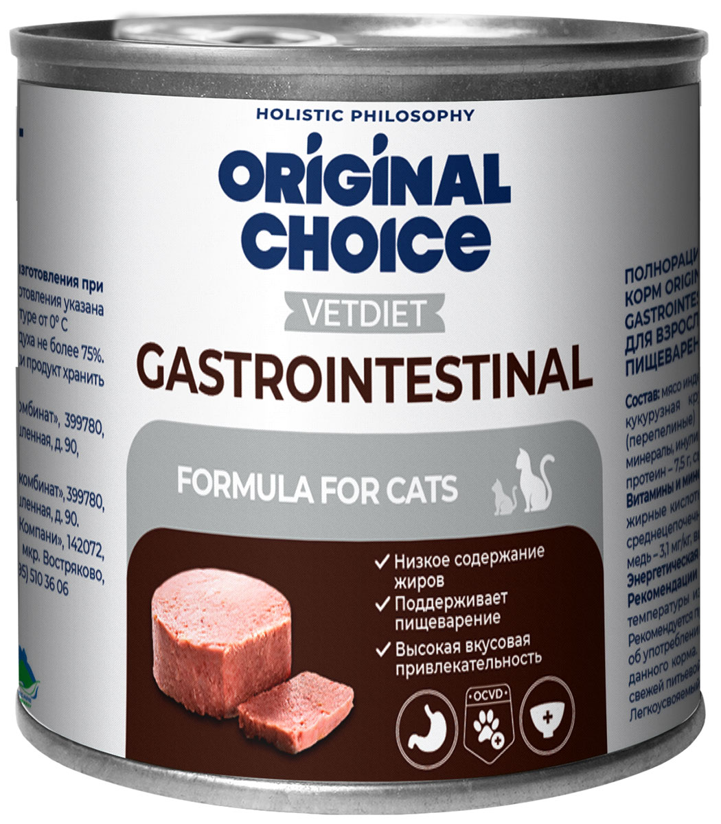 Влажный корм (консервы) для кошек ORIGINAL CHOICE VETDIET GASTROINTESTINAL чувствительное пищеварение (240 гр)