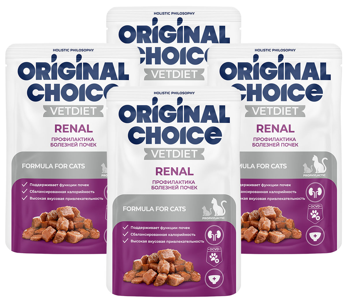 Влажный корм (консервы) для кошек ORIGINAL CHOICE VETDIET RENAL профилактика болезней почек пауч (85 гр х 4 шт)