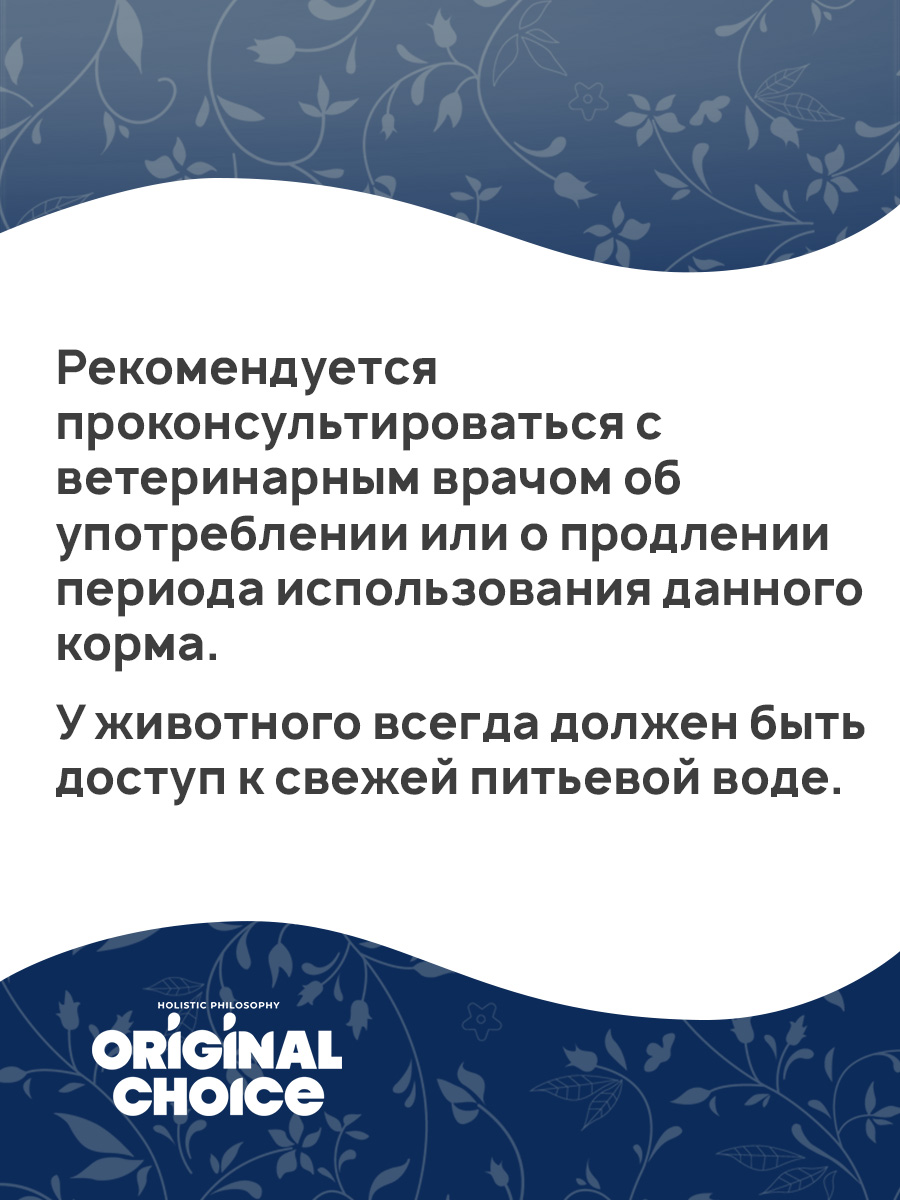 Рекомендуется проконсультироваться с ветеринарным врачом об употреблении или о продлении периода использования данного корма.