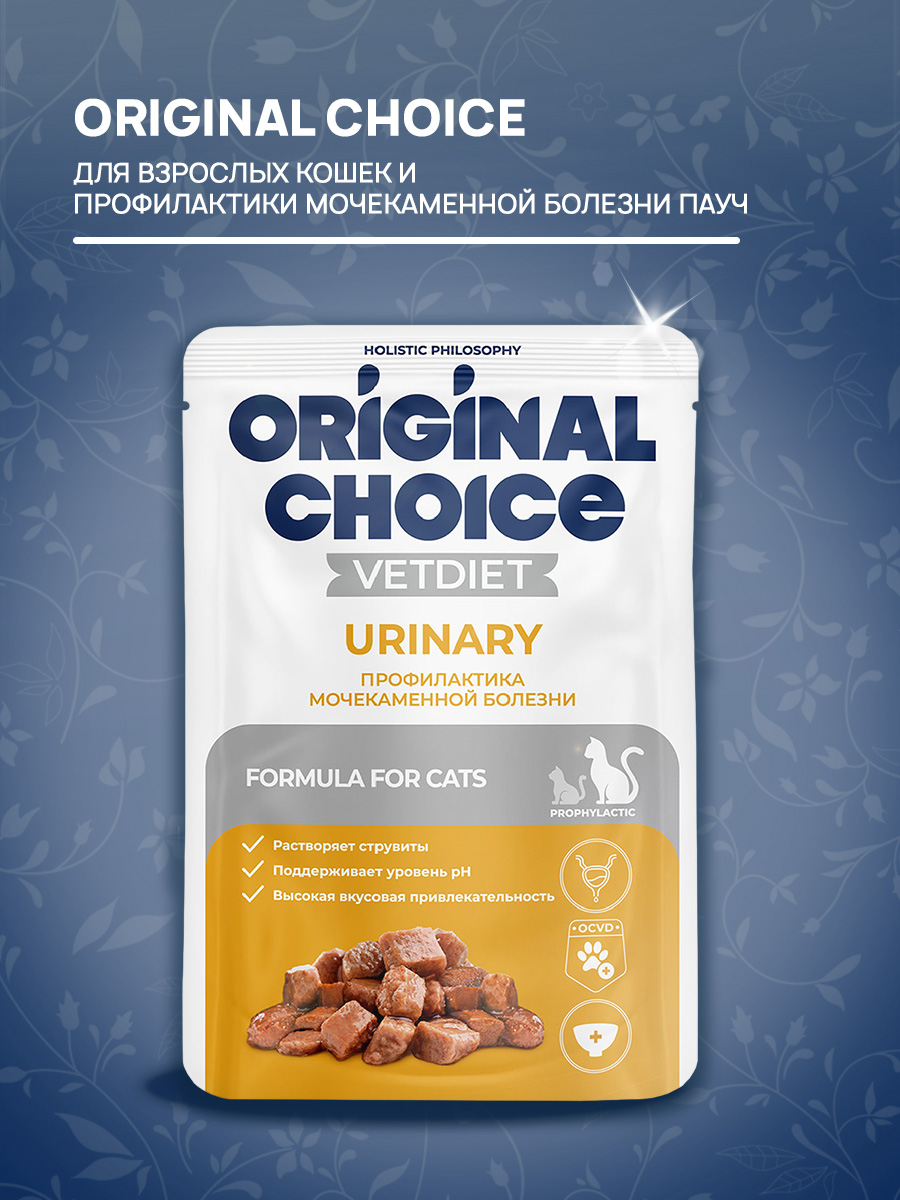Влажный корм (консервы) для кошек ORIGINAL CHOICE VETDIET URINARY профилактика мочекаменной болезни пауч (85 гр х 8 шт)