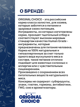 Высокое качество мясных ингредиентов в рецептуре Original Choice позволяют оставаться привлекательными по вкусовым характеристикам.