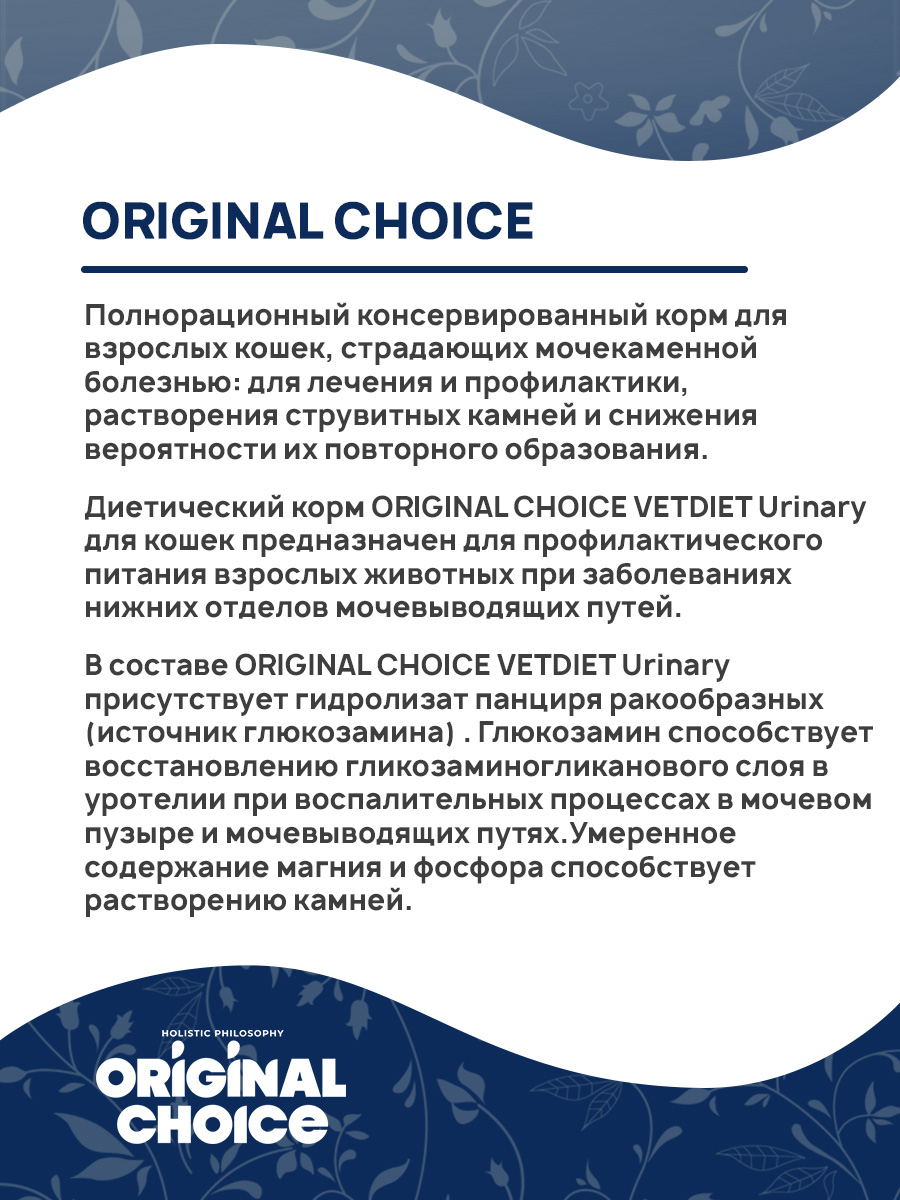 Влажный корм (консервы) для кошек ORIGINAL СHOICE VETDIET URINARY профилактика мочекаменной болезни (240 гр)