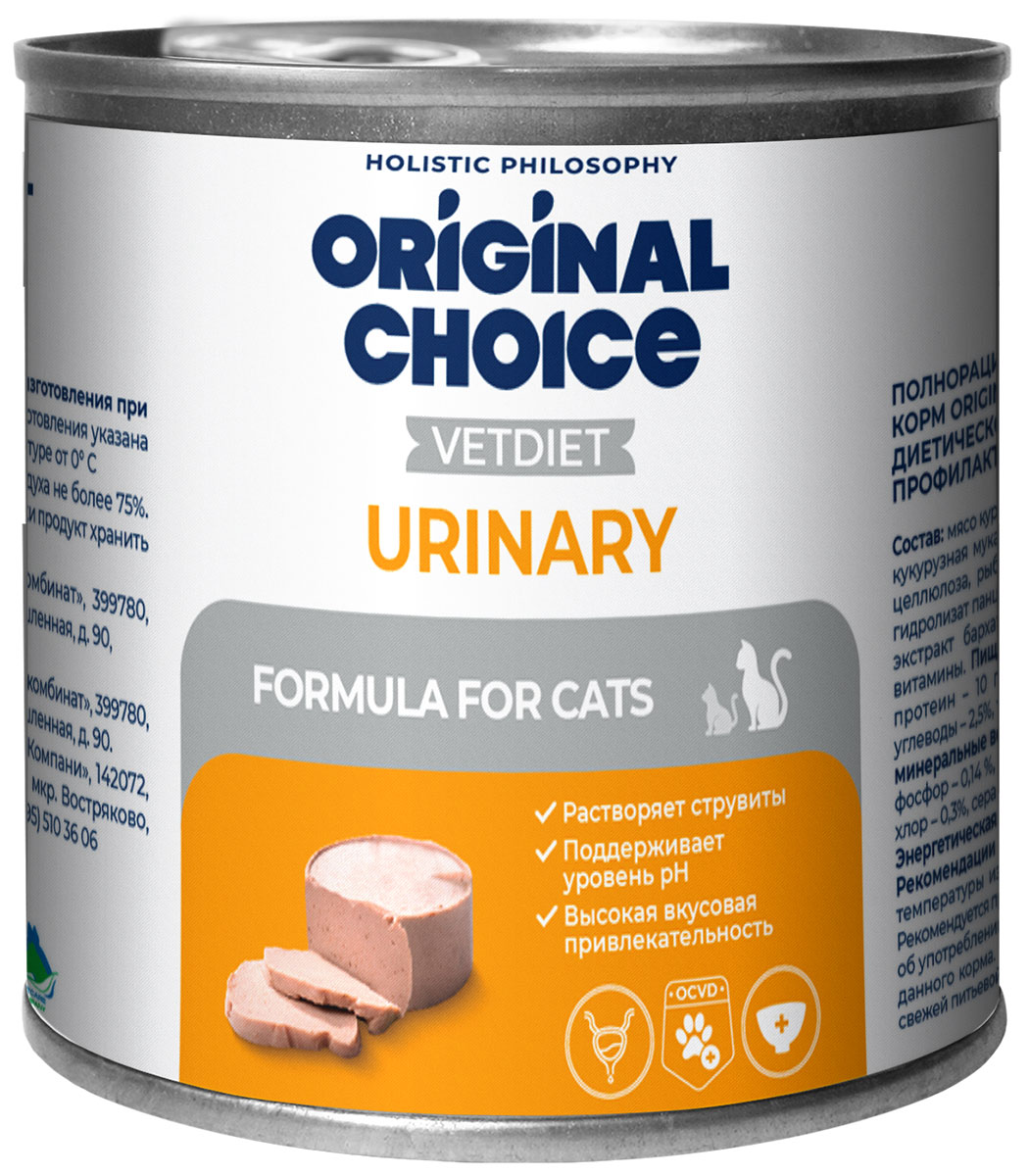 Диетический корм ORIGINAL CHOICE VETDIET Urinary для кошек предназначен для профилактического питания взрослых животных при заболеваниях нижних отделов мочевыводящих путей.