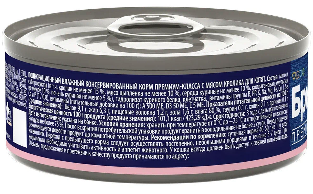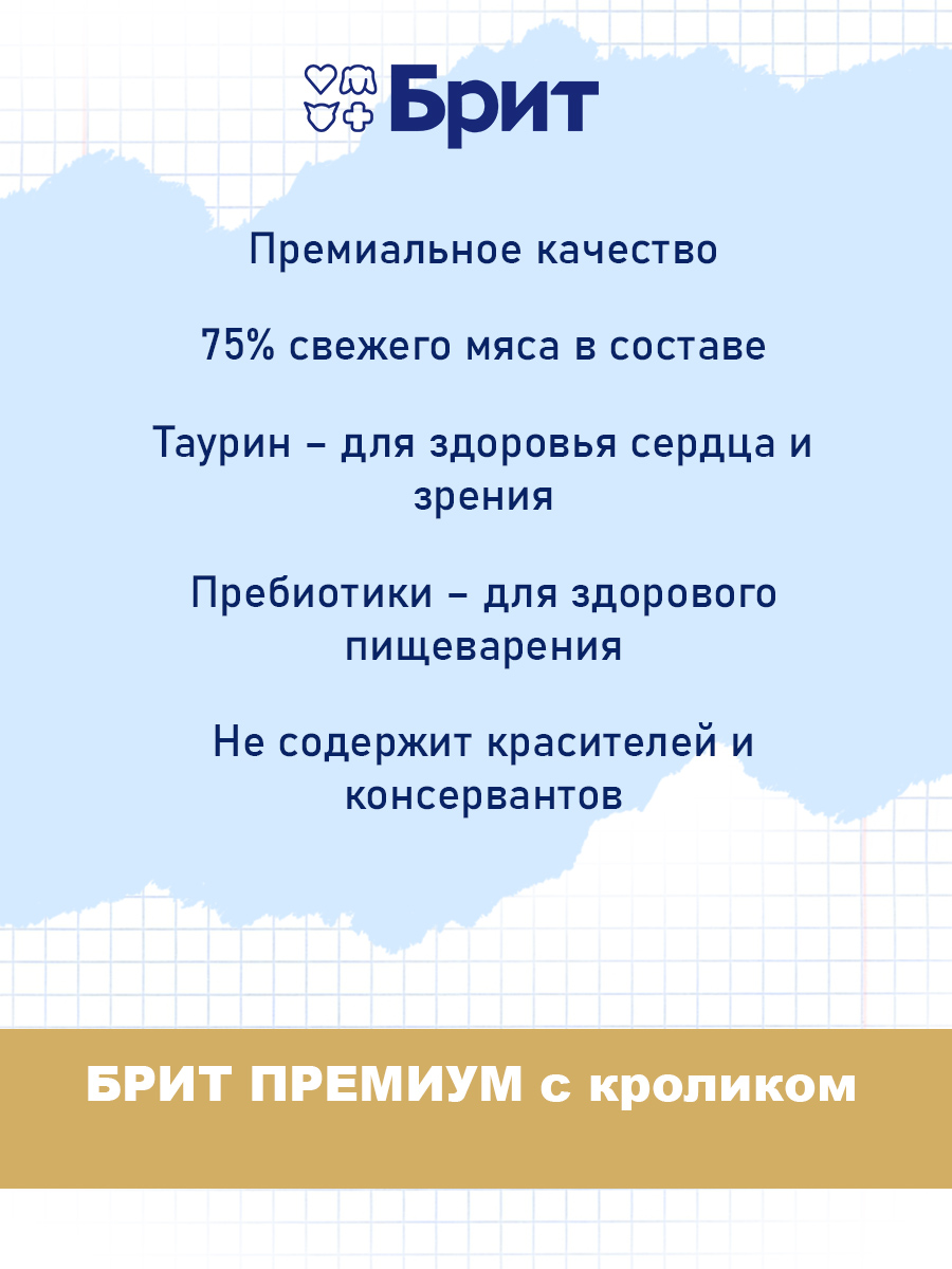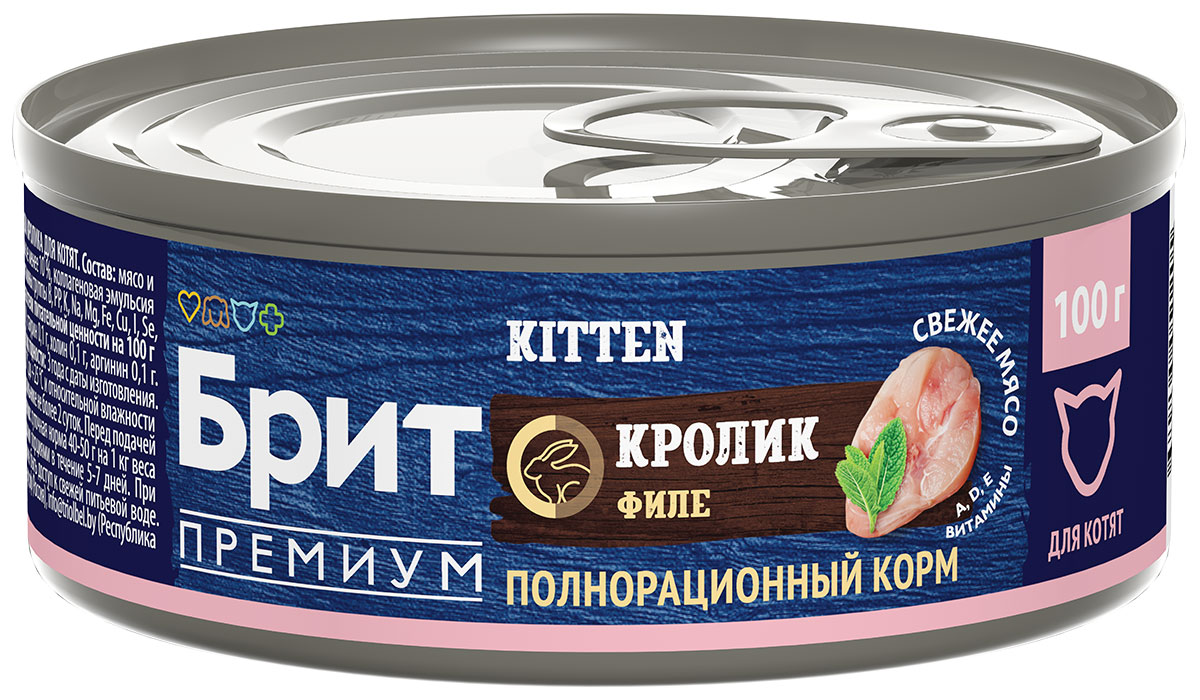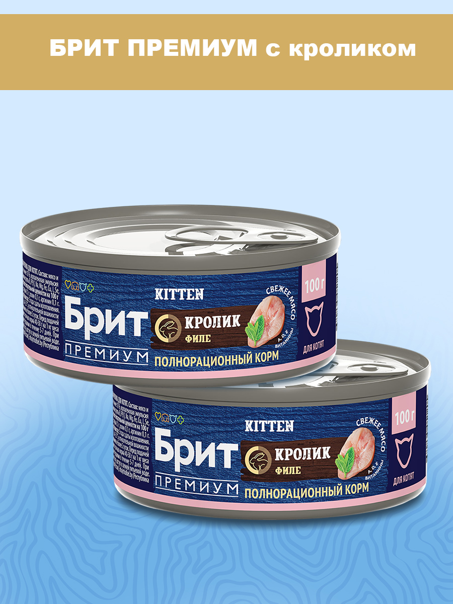 Влажный корм (консервы) для котят БРИТ ПРЕМИУМ кролик (100 гр)