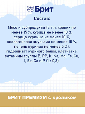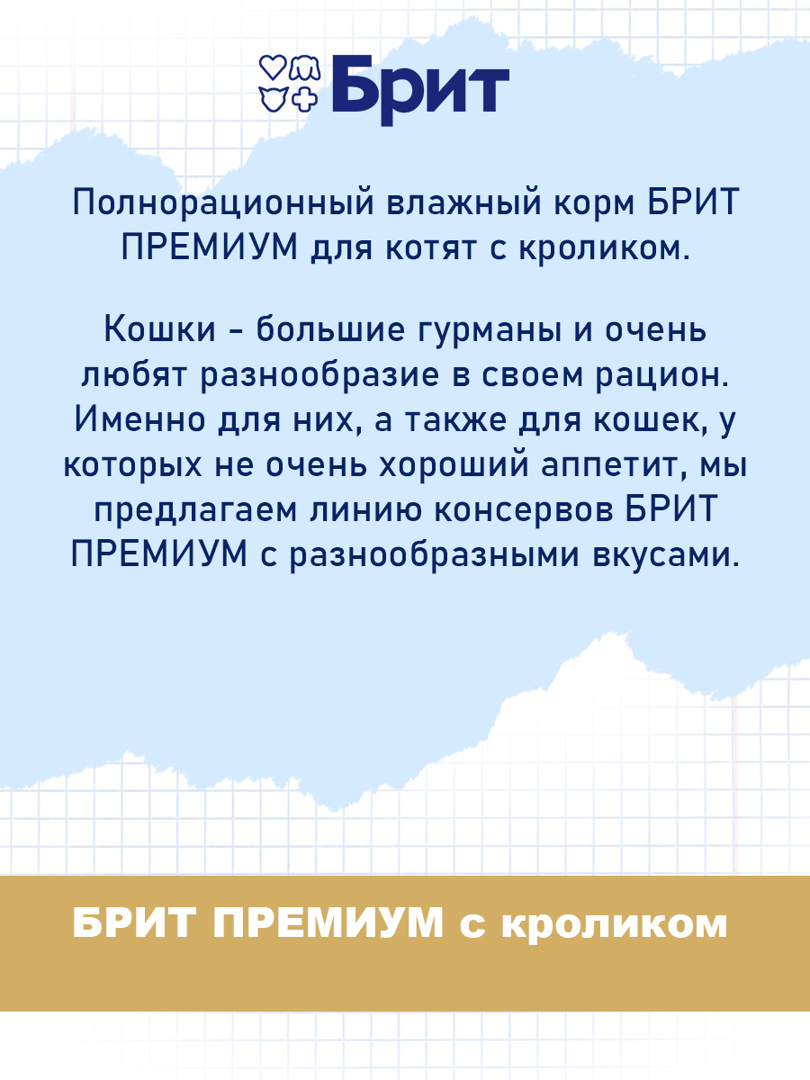 Полнорационный влажный корм БРИТ ПРЕМИУМ для котят c кроликом.