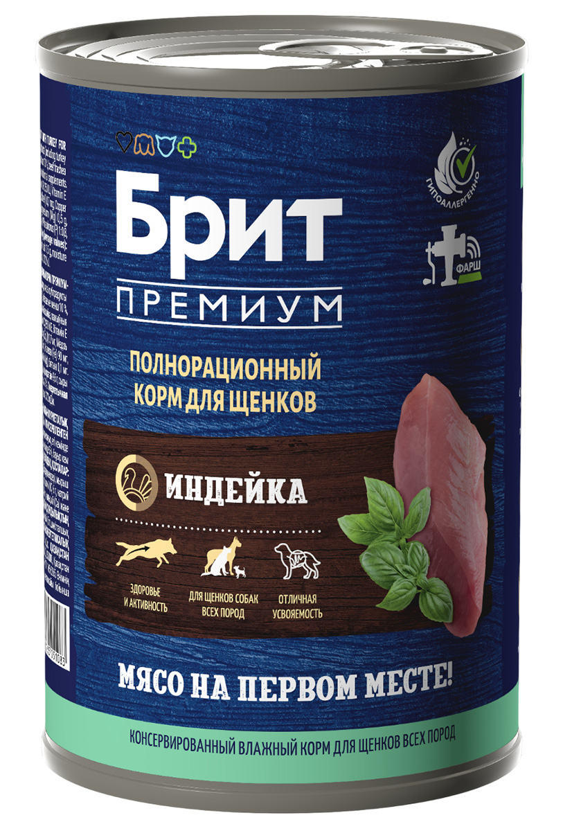 Влажный корм (консервы) для щенков БРИТ ПРЕМИУМ индейка (410 гр)