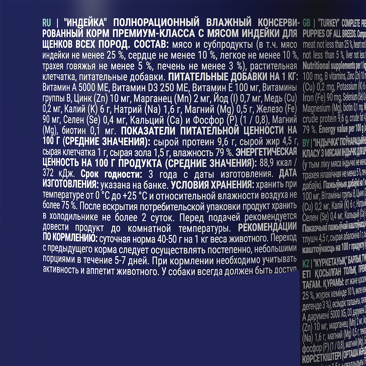 Полнорационный влажный консервированный корм премиум-класса с индейкой для щенков всех пород.