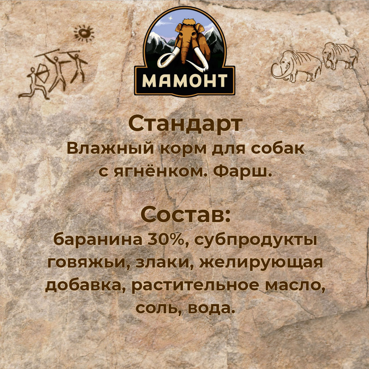 МАМОНТ СТАНДАРТ – это 100 % натуральное влажное питание, изготовленное из мяса высшей категории.