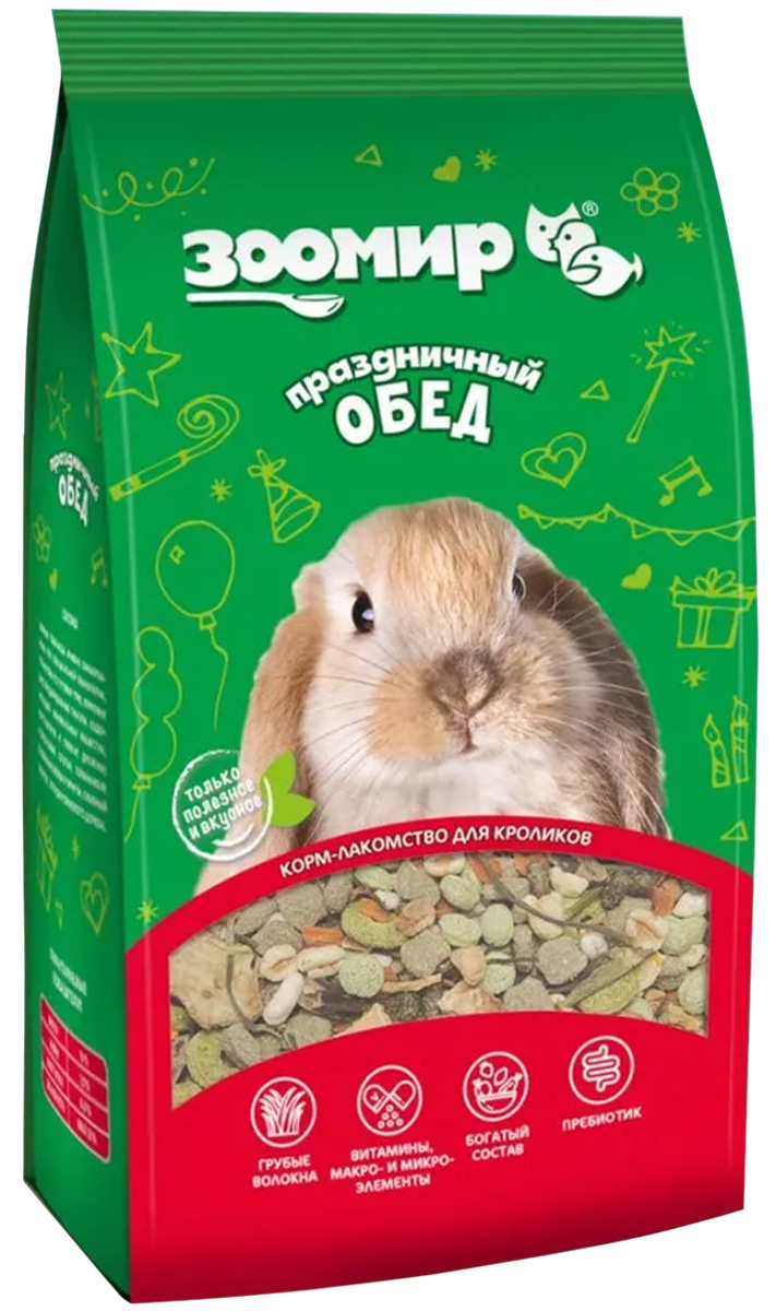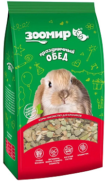 ЗООМИР Корм-Лакомство Праздничный Обед Для Кроликов - это настоящее лакомство с выдающимися пищевыми свойствами и восхитительным аппетитным ароматом, основу которого составляют самые привлекательные, вкусные и полезные компоненты.
