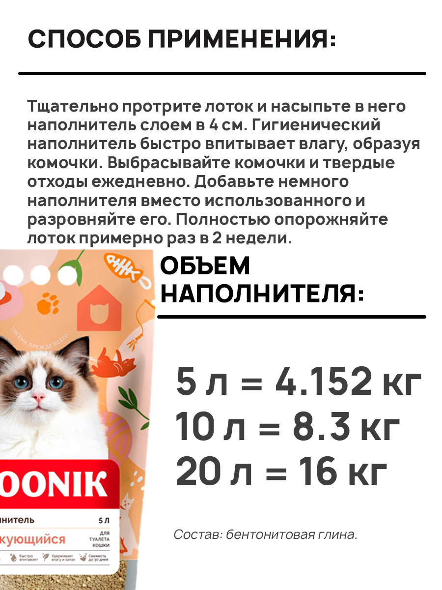 ZOONIK КОМКУЮЩИЙСЯ - наполнитель комкующийся для туалета кошек (5 л)
