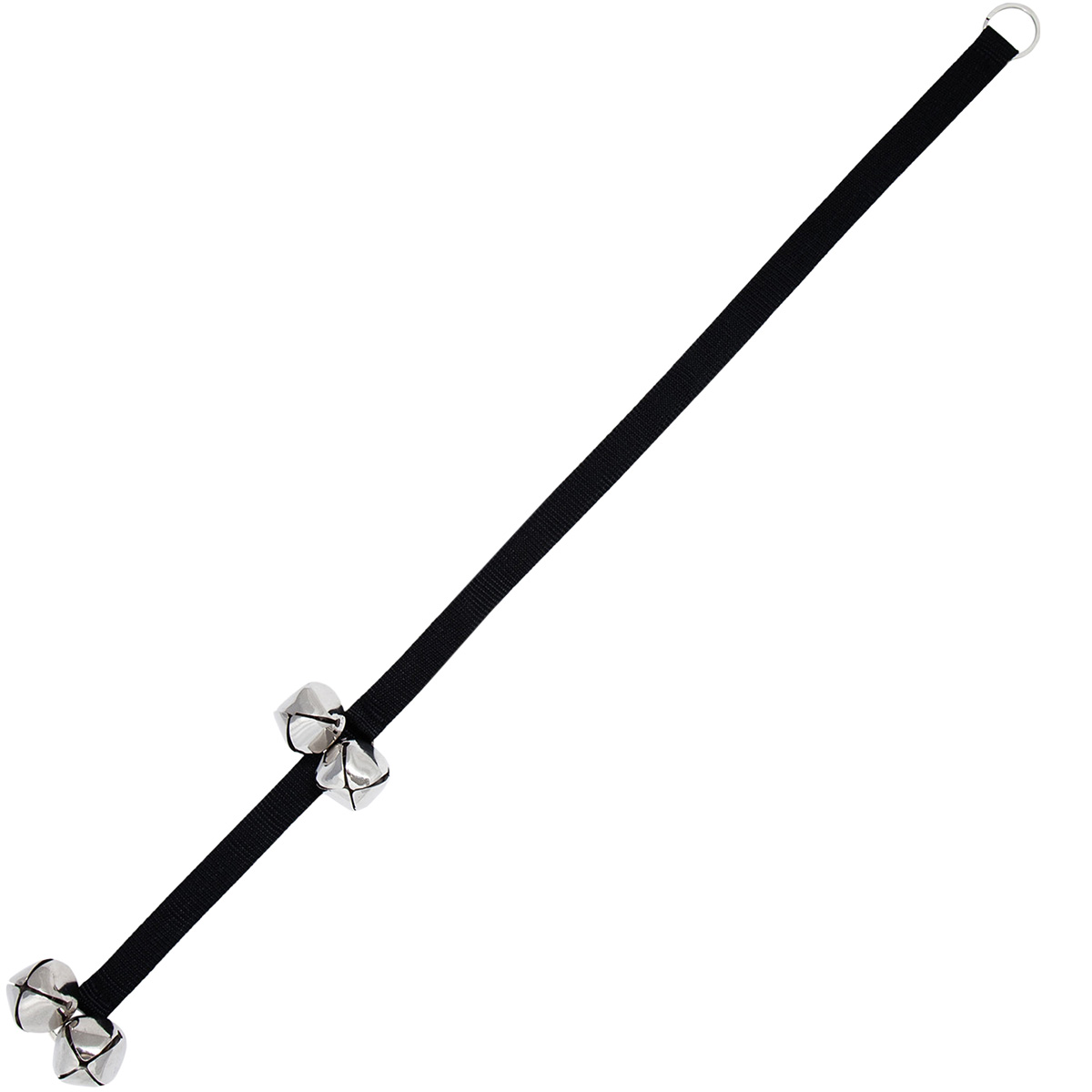 ВНИМАНИЕ! Для закрепления ремня на двери проденьте его через кольцо без колокольчиков и повести на ручку двери получившуюся петлю. Затяните петлю, чтобы ремень с колокольчиками не слетел с ручки двери. Отрегулируйте расположение колокольчиков над уровнем пола, так чтобы собаке удобно было дотрагиваться до них носом. Для этого петлю на ручке двери оберните вокруг ручке один или несколько раз.
