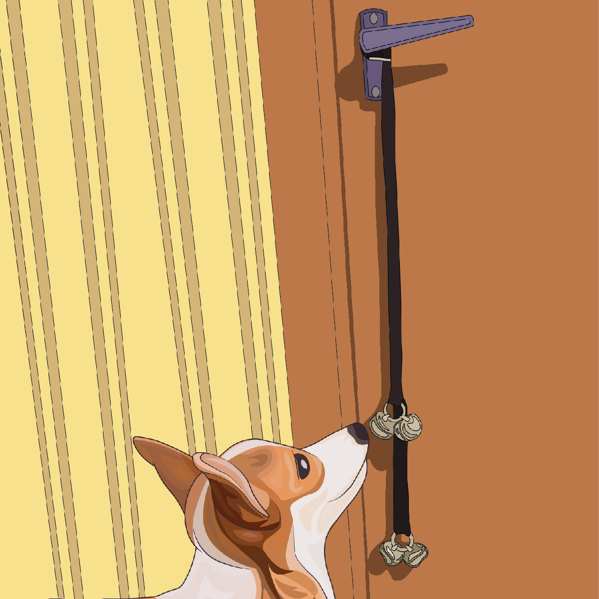Как только ваш щенок или собака научилась дотрагиваться носом до колокольчиков по команде, повесьте ремень с колокольчиками на дверную ручку той двери, через которую собака должна проситься выходить. Подбадривайте Вашу собаку дотронуться до колокольчиков на двери и, как только она сделает это, скажите «звонок» и дайте ей лакомство. Повторяйте тренировку до тех пор, пока ваша собака не начнет дотрагиваться до звонка по команде. Наградите собаку и дайте самое любимое лакомство.